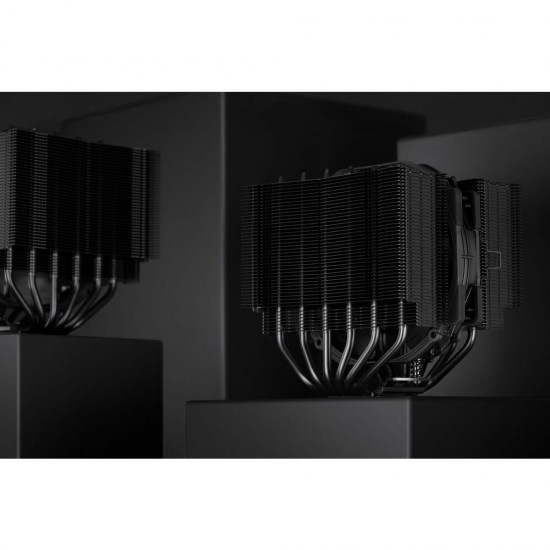 The NH-D15S chromax.black is an all-black version of Noctua’s award-winning NH-D15S premium-quality quiet CPU cooler. Thanks to the same asymmetrical dual-tower heatsink design and single NF-A15 PWM fan, it stays true to the NH-D15S’s successful formula of fusing dual-tower performance with excellent RAM, case and PCIe compatibility. At the same time, the chromax.black version with its black fan and black coated heatsink combines these assets with a sleek stealth look. Topped off with the renowned SecuFirm2™ multi-socket mounting system, Noctua’s enthusiast-grade NT-H1 thermal compound and a full 6-year manufacturer’s warranty, the NH-D15S chromax.black is a premium choice for customers who seek a highly compatible dual-tower heatsink that looks just as great as it cools.